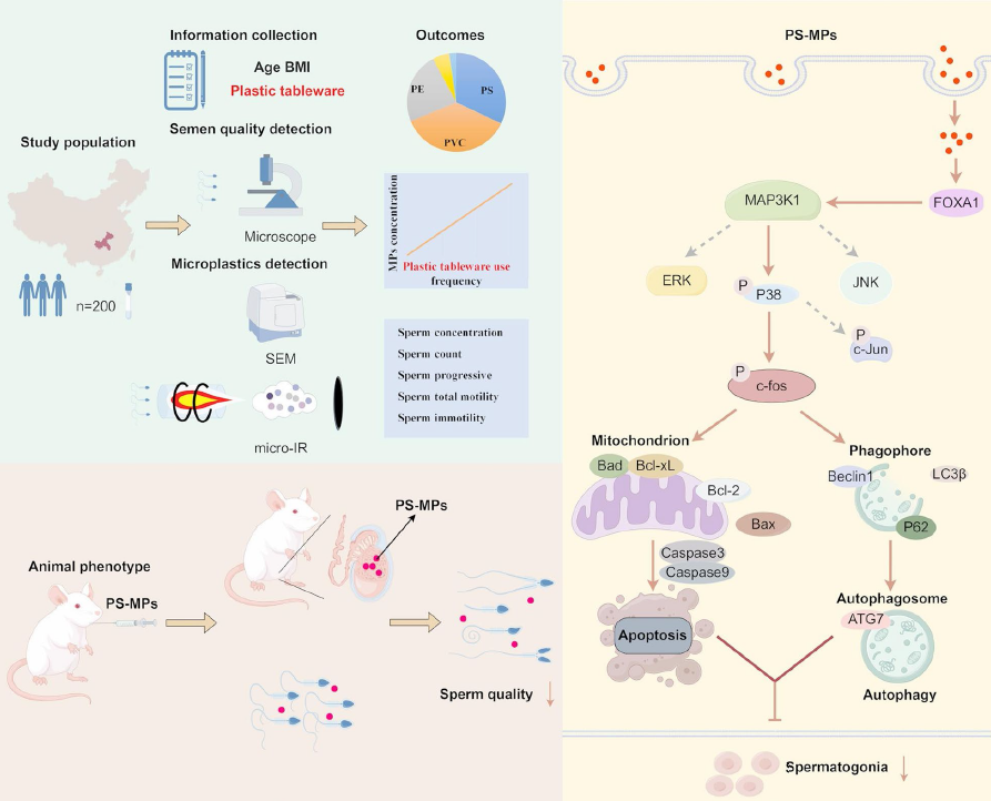 团队通过细胞实验与动物模型验证,揭示了微塑料损伤生殖功能的分子机制: