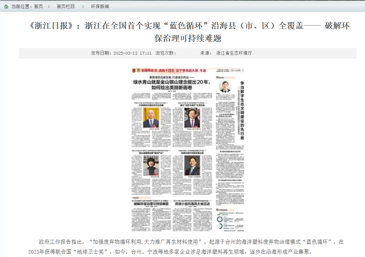 这一模式已被生态环境部作为典型案例在全国推广。在2025年对政协提案的答复中,生态环境部明确提到浙江省台州市“蓝色循环”新模式的经验做法。